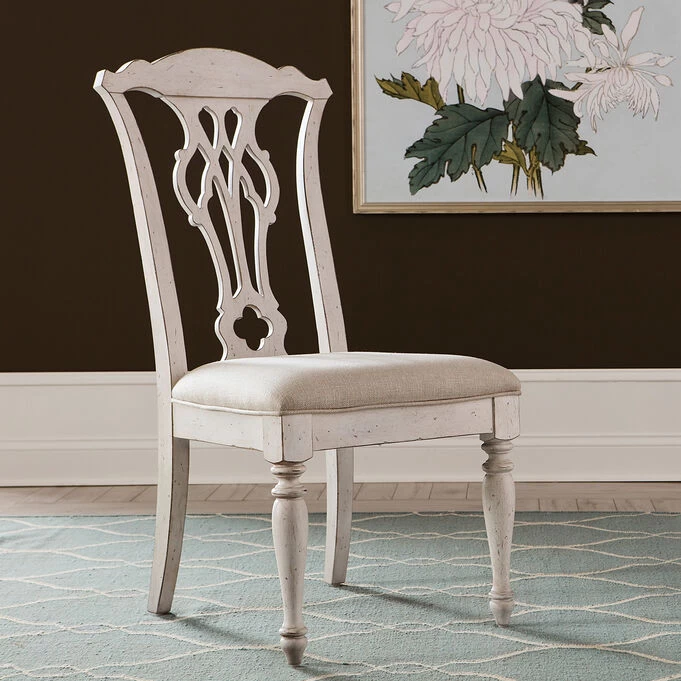 Take a walk through time and find vintage treasure with the Abbey Road Splat Back Side Chair. Combining a grand feel of the past with today’s luxurious lifestyle, this seat truly deserves a place at the table. The eclectic blending of old and new, cottage and traditional demonstrates personality and taste. Reminiscent of English antiques, Abbey Road recreates the charming beauty of times past with today’s home in mind.