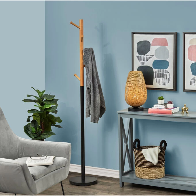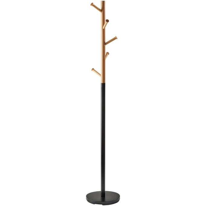 A branching, stable structure that holds a multitude of coats, hats and bags, the Arbor Coat Rack effortlessly blends convenience and style. Made of walnut rubber wood with a strong black metal base, this coat rack withstands the wear and tear of daily life with practical style. It features five staggered hooks connected to the rubberwood stem, each with a weight capacity of 11 pounds, to keep your clothes, bags, and other items conveniently organized. With its sleek and compact design, the Arbor Coat Rack is an elegantly stunning and artful addition to your office, bedroom, living room, or entryway.