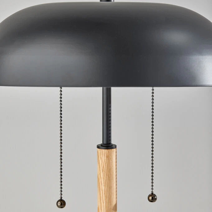 The Everett Table Lamp is a perfect fit for any industrial, farmhouse, or transitional space. It boasts an inspired combination of materials and colors, with a soft curvy silhouette. The black metal base and vintage domed shade are complemented by a natural wood accent piece on the stem for added visual interest. The lamp’s large black metal dome shade directs light downward, making it a great choice for side tables, nightstands and desks. The lamp is operated by double-pull chain switches made of black metal. The Everette Table Lamp goes well with design styles such as industrial, mid-century modern and eclectic.