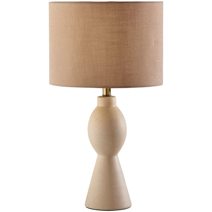 Upgrade your space with the transitional, monochrome aesthetic of the Naomi Table Lamp. Its beige-speckled ceramic base adds rich texturing, while the unique round geometric silhouette pulls attention. Topping the lamp is a beige fabric drum shade that warmly diffuses light while highlighting the subtle texturing of the fabric. The lamp is easily turned on and off by a rotary socket switch. Its simple lines and neutral coloring go well with a variety of design styles such as transitional, minimalist, eclectic and modern farmhouse. The Naomi Table Lamp is a stunning addition to your living room, bedroom or home office.