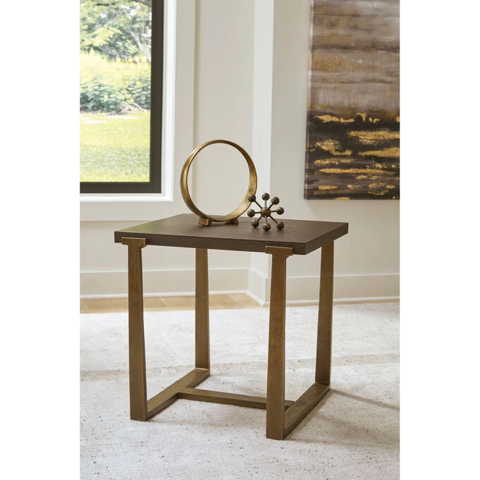 The Balintmore Brown/Gold End Table is a rare accent table that bridges modern and contemporary designs. This has a solid surface with a dark brown veneer finish. The rectangular end table with metal accents makes a perfect cocktail table, accent table, or end table for your living room. Slumberland Furniture offers a wider range of products, including other occasional tables from the Balintmore collection. You need to see these pieces to believe them. Visit your local Slumberland Furniture showroom or order yours online for delivery. Buy quality products at Slumberland today!