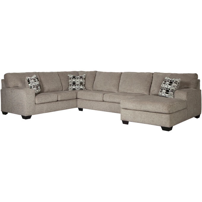 Cool and contemporary can also be warm and cozy. Case in point: the Ballinasloe 3 Piece Right Chaise Sectional. With upholstery in a soothing platinum tone that is incredibly plush to the touch and rounded corners to give the clean-lined profile a sense of ease, you will love the high-style look that’s also ultra inviting. Includes a right-arm facing corner chaise, armless loveseat and left-arm facing sofa.