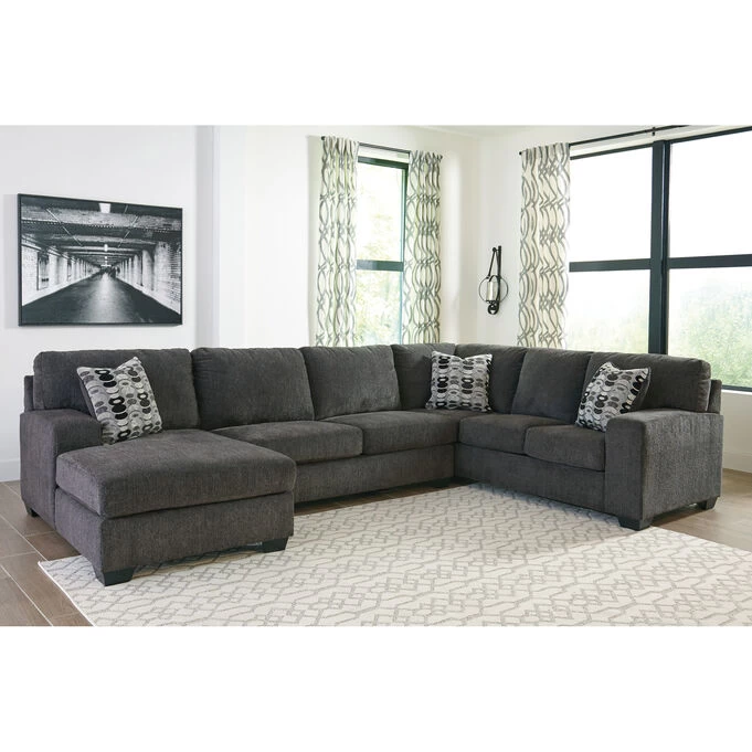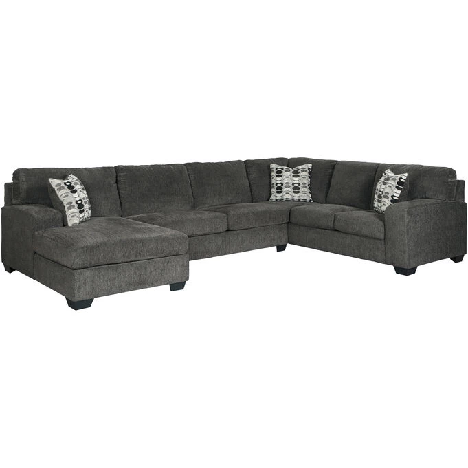 - Includes 3 pieces: left-arm facing corner chaise, armless loveseat and right-arm facing sofa