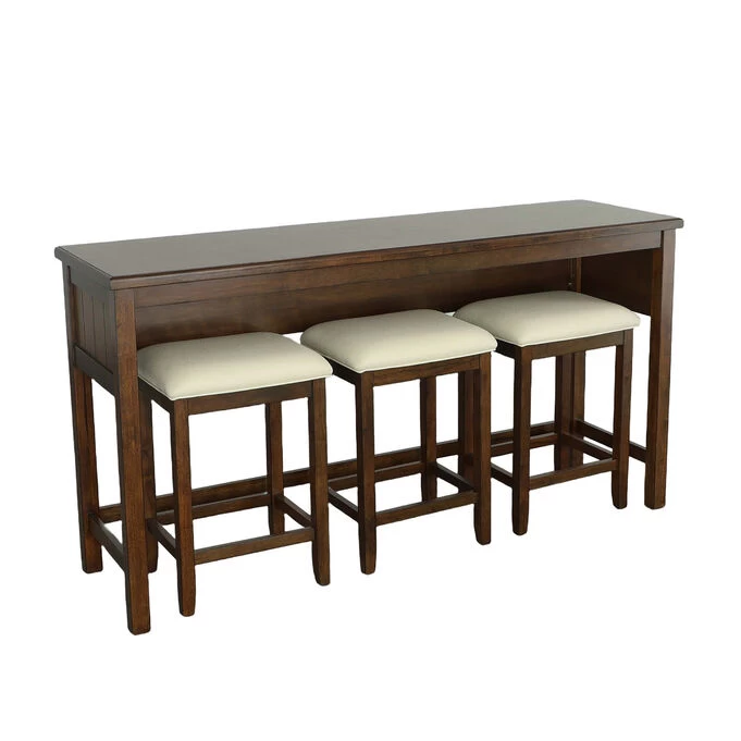 The Barstow 4 Piece Bar Set includes a counter height table and three padded seat stools. This multi-use set works well in a number of areas in your home, from the dining room to the office to the great room. It creates an ideal spot for a quick breakfast, casual lunch or weeknight dinner. Featuring sturdy construction, this durable bar set will be a fixture in your home for years to come. The simple lines and neutral upholstery of the Barstow 4 Piece Bar Set means it will fit seamlessly into your current style, whether it be farmhouse, transitional or minimalist.