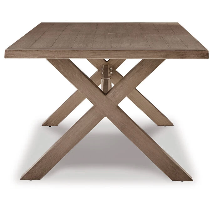 Balancing effortless natural beauty and minimalist design, this dining table seamlessly brings your contemporary style outdoors. Sporting a wood-look finish, it entices with its striking linear form. This sleek yet durably made table refines the art of relaxed outdoor living.