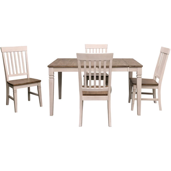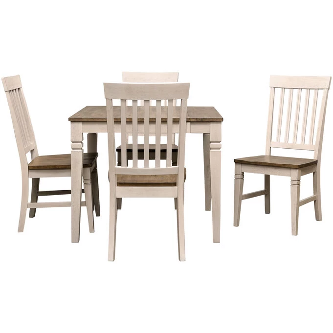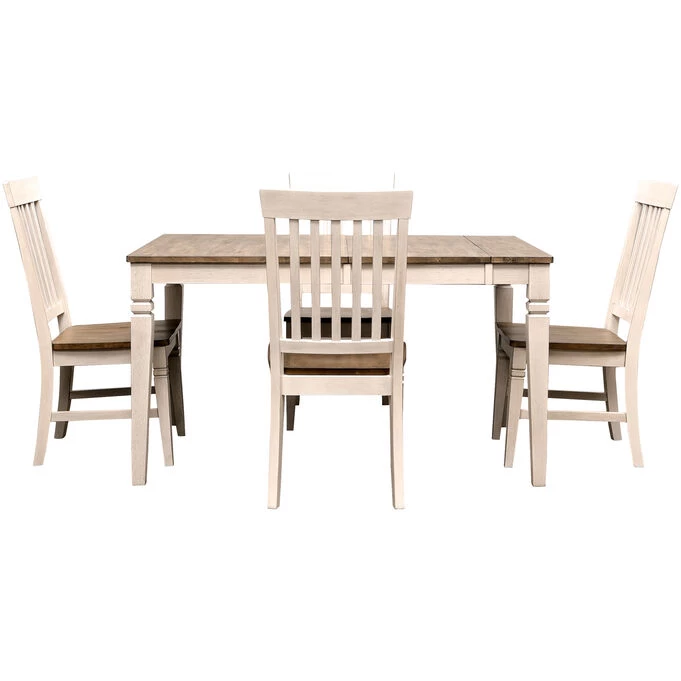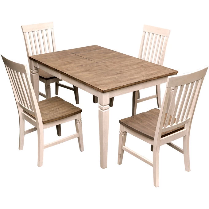 With a classic table design and sturdy solid wood construction, the Beacon 5-pc Dining Set is the perfect adjustable table and chair set. This dining set comes with four chairs and a table that adjusts to two different sizes. You can accommodate four to eight people, and Beacon sells additional Slat back Chairs to go with your set. The finish on these tables is the result of a 13-step finish process for an extra-strong enamel finish. You can see the Beacon Dining Table Set at your Local Slumberland or order it online for convenient home delivery.