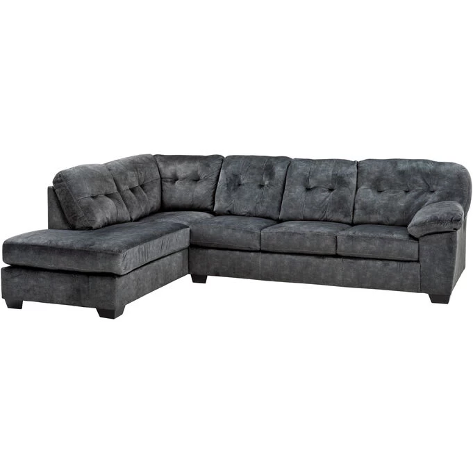 Accommodate the whole family and more with the Bellows left chaise sectional. This generous seating solution will welcome you home in soft, cushy comfort. The upholstery is wonderfully soft to the touch, and the tufted box cushioning and thick pillow top armrests really amp up the comfort. This quality sectional includes a chaise on the left for “put your feet up” comfort that doubles as seating. Quality construction details include a corner-blocked frame that’s glued and stapled, and high-resiliency foam cushions wrapped in thick poly fiber. Perfect for any casual décor, bring Bellows home today.