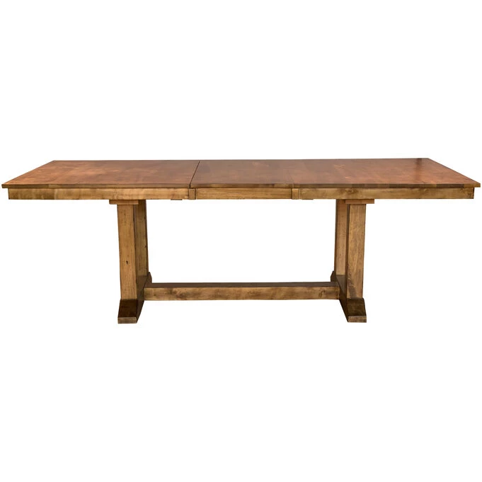 The Bennett trestle dining table has a traditional look that’s never out of style. This wood dining table is made of solid birch and has a slightly distressed look with a protective lacquered finish—so important for daily use. It has a removable leaf, so you can easily accommodate a larger group—cable glides make it a snap to open and close. Whether your look is traditional or transitional, you’ll love the timeless appeal of this extendable trestle dining table.