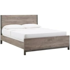 The Brooklyn Nightstand is sleek and contemporary. Made of melamine construction with solid wood, it boasts an updated gray finish with a replicate wood look and feel and two drawers for storage. Plus, you can add wall panels with LED lights.