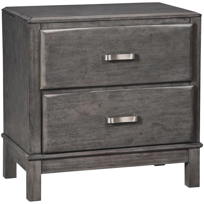Casual elegance abounds with the Caitbrook Nightstand. Beautifully designed and crafted with dovetail construction, the nightstand includes 2 contoured drawers for ample storage. And the distinctive gray/silver finish adds the final touch of class.