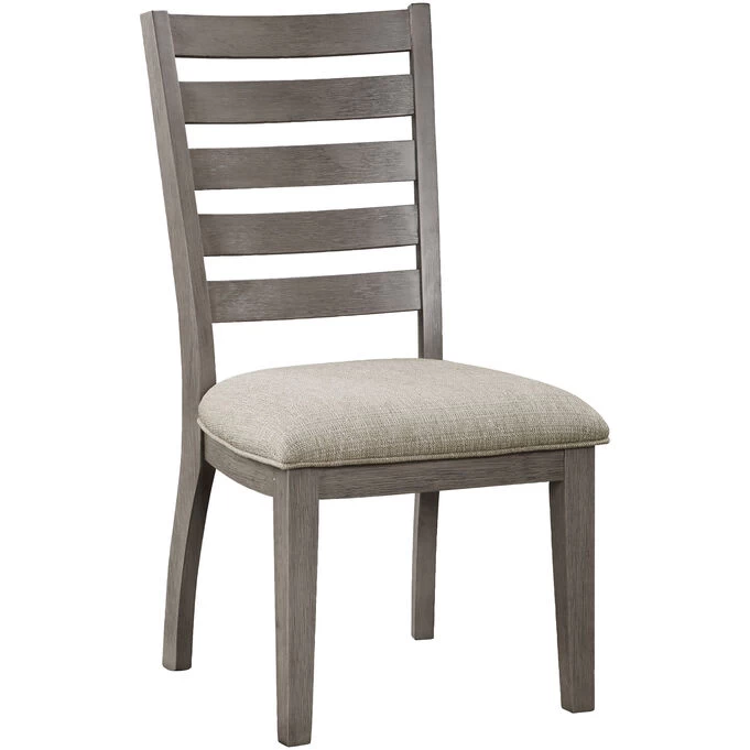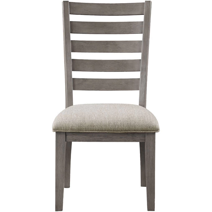 The traditional styling of the Carolina Collection lends timeless appeal to the look of your casual dining space. With subtle hints nodding to the Arts and Crafts design movement, the ladder-back side chair features classic lines that solidify the versatile aesthetic of the collection. Covering the padded seats of the side chairs is a neutral tone fabric upholstery, complementing the traditional two-tone cherry and gray finish of the chair’s wood veneer.