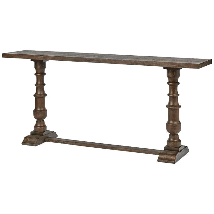 The Charleston sofa bar table can be paired with stools or used alone as a display table or sofa table. Place it against a wall and add matching stools, the matching Charleston bench, or the stools of your choice, and you’ve got a handy snack bar. Or position it behind your sofa or sectional, with a few favorite dishes, vases, or art objects. Made of oak solids and veneers, this sofa bar table has a rustic antique look with a multi-stage wire-brushed finish.