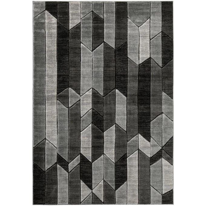 A hand-carved stripe design in shades of black and gray makes this rug the perfect accent for any space in your home. Constructed of polypropylene with a jute backing, it adds effortless warmth and coziness wherever it’s placed. 25mm pile. Spot clean only. Rug pad recommended.