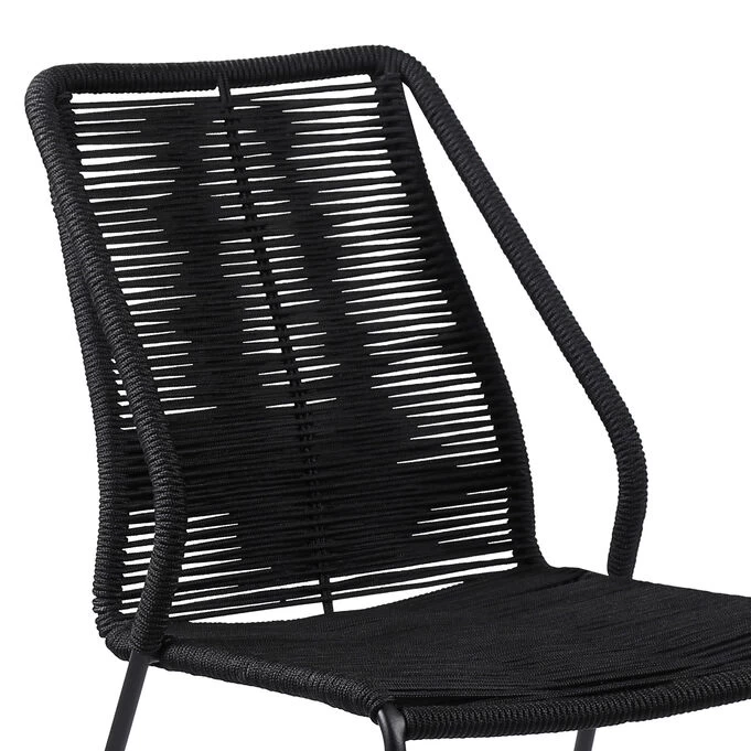 - MODERN AND CHARMING – The steel frames sport a black finish; the rope is woven with an intricate design on their seatbacks, all while being complemented by sleek straight hairpin legs.