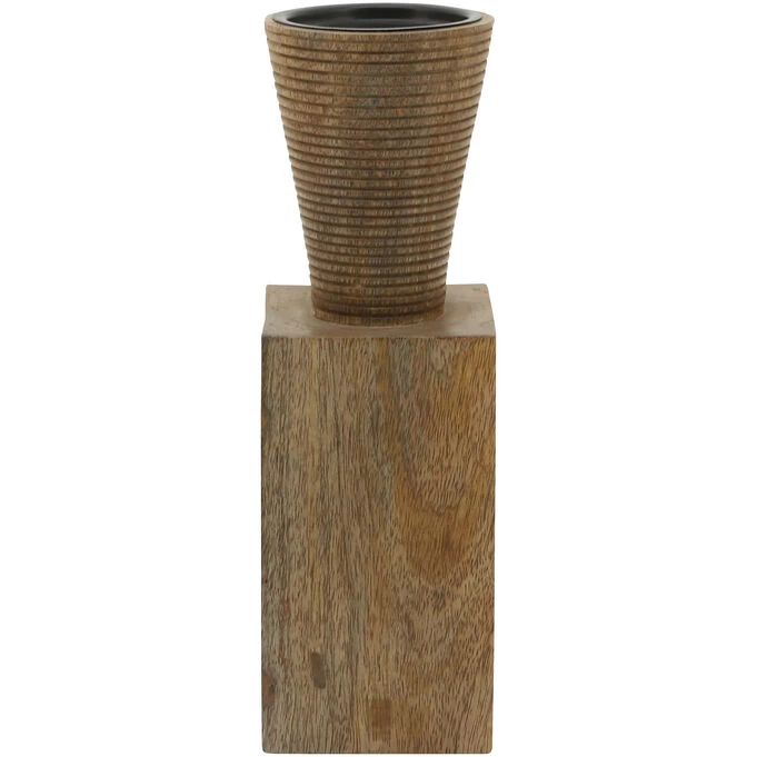 Collected Culture Brown 11 Inch Wood Geo Candle Holder