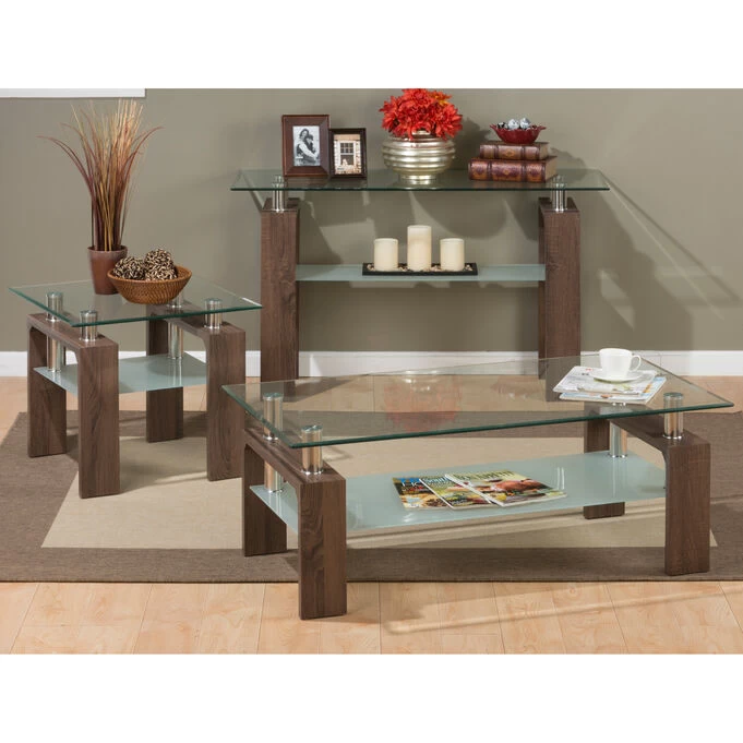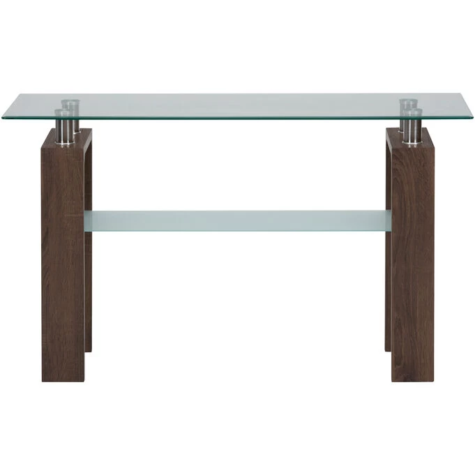Make a statement with the Compass Sofa Table featuring frosted glass and steel accents. Fits well with industrial or modern decor.