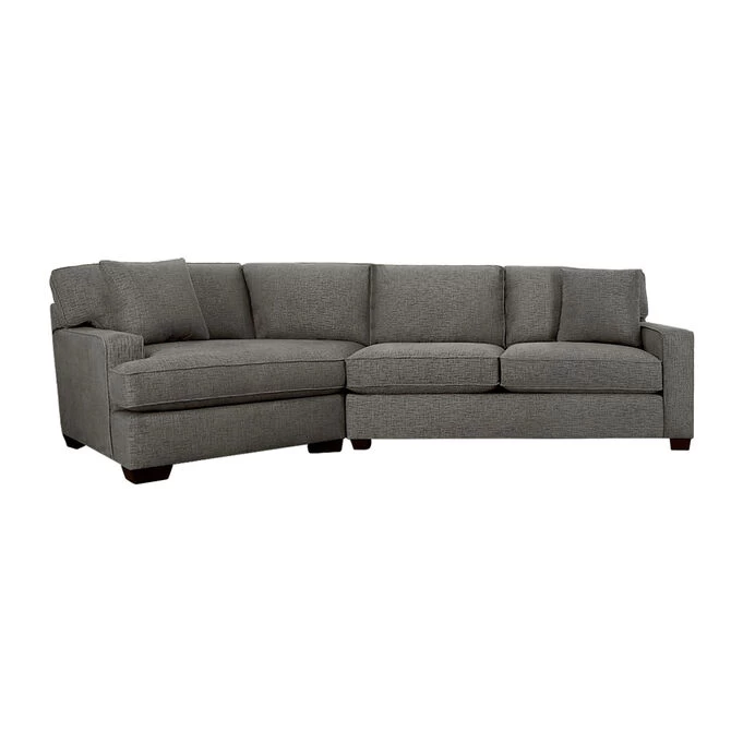 Perfect for a small apartment, reading nook or home office, the Connections Track Left Cuddler Sofa is a customizable seating option for your space. It includes a left cuddler and a right loveseat and is available in three neutral hues that work well with any color scheme. Crafted in the USA, the sofa has a solid and manufactured wood frame and foam and fiber-fill cushions covered with easy-care fabric upholstery. Comfortable and cozy, the sofa livens up your home with classic lines that fit any design style. The sectional pieces are connected by clips that keep them securely in place.