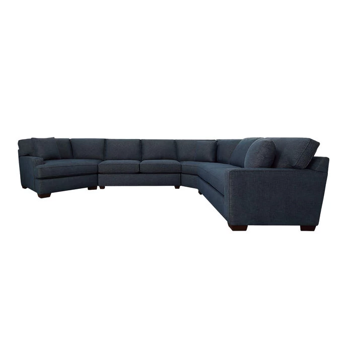 Experience personalized luxury with the Connections Track 4 Piece Left Cuddler Wedge Sectional. This sectional, expertly crafted in the USA, boasts a robust wood frame, resilient foam cushions, and a customizable fabric selection to match your unique style and space. Its adaptable configurations cater seamlessly to diverse room layouts, while the enduring woven fabric in versatile neutral tones ensures effortless upkeep. Built with enduring hardwood and plywood, reinforced by sinuous spring seat decking, and enhanced by fiber-wrapped foam cushion cores, this exclusive Slumberland sectional embodies both practicality and elegance. Refresh your space with this inviting, tailored sectional that epitomizes superior craftsmanship and comfort.