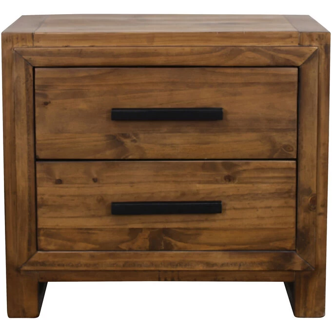 As practical as it is pretty, the Creedmore Nightstand completes the look of your bedroom and provides convenient storage just where you need it. Place next to the bed, you can use it to keep your alarm clock, glasses, phone, or anything else you need close by. The Creedmore Nightstand’s gorgeous spice finish highlights the wood’s natural grain and delicate details, bringing out its warmth and personality. Two drawers with matte black pulls create a space to store nighttime essentials, such as earplugs or sleep masks. The open-style feet give an updated modern feel to this bedside table’s farmhouse vibe.