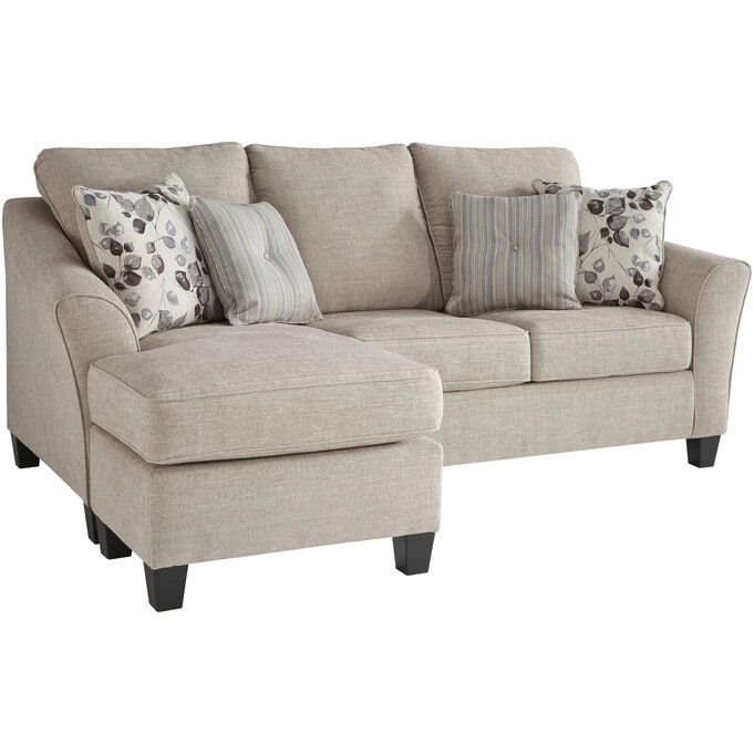 The Cyprus sofa chaise sleeper gives you so many options. The chaise is reversible to suit your space, and a queen size memory foam mattress unfolds when it’s time to host overnight guests. The cushions are made of high-resiliency foam, wrapped in thick poly fiber for comfort. The frame is corner-blocked for stability, and the bi-fold mattress sits atop a metal frame. Four throw pillows season this sofa with extra style – 2 with a center button and 2 with a coordinating leaf pattern. Complement your modern or transitional décor with Cyprus.