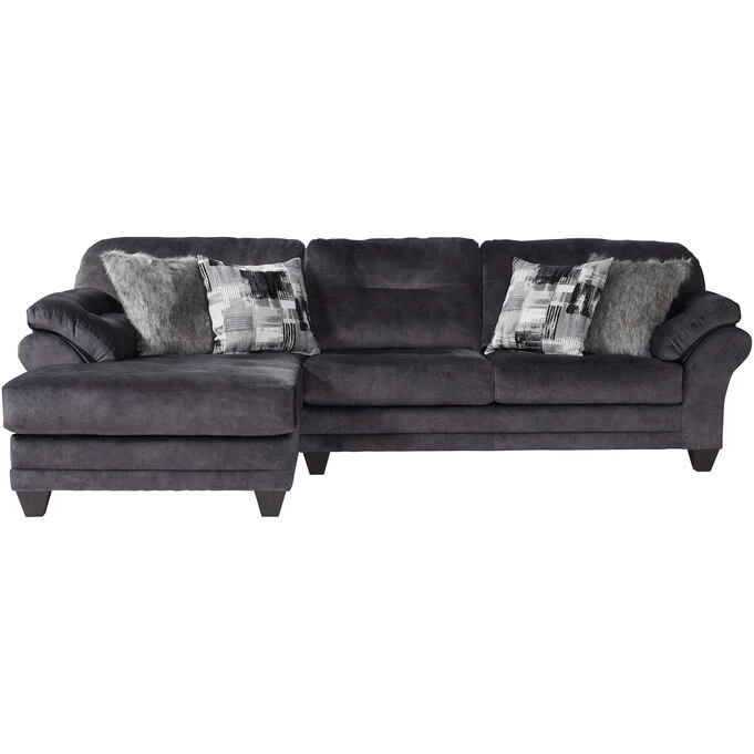 Constructed of durable fabrics, hardwood frame construction, and sinuous wire springs, the Ello Left Chaise Sectional is the right fit for your living room. This comfortable seating arena comes with three decorative accent pillows for extra value. You should be comfortable during your leisure time, and the Ello Left Chaise Sectional will ensure that this is your favorite seating area. Check the product dimensions to ensure that this sectional is right for you. You can find this sofa sectional at Slumberland Furniture or order yours online. Check product availability and delivery zones before making your purchase.