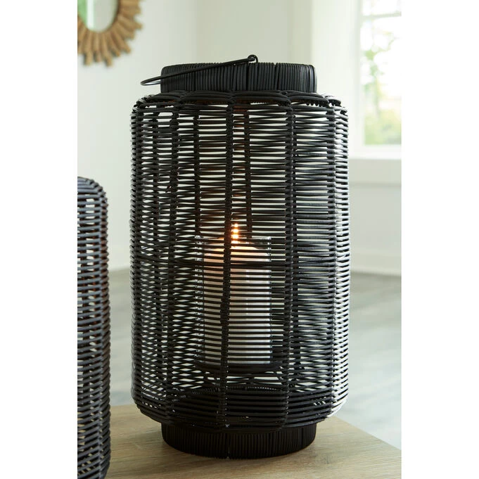 Bring a casual look and feel to your indoor or outdoor spaces with the Evonne Large Lantern. The rattan lantern increases the cozy, homey vibe in any room. Its black faux rattan filters the light of your candle to give a gentle glow to your space. The lantern brings a natural element to bedrooms, living rooms, dining rooms and entryways. Commonly found in boho or shabby chic interiors, this lantern works well with a range of design styles, including modern, eclectic, transitional and traditional. When not in use, this stylish indoor/outdoor piece rounds out your decor with its versatile style.