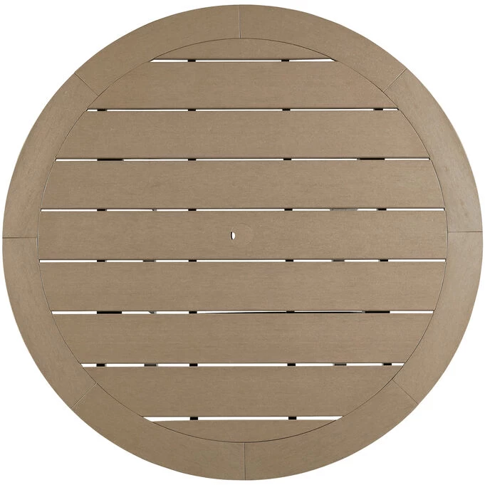 With its standout two-tone finish and durable table design, the Fairen Trail Bar Table takes outdoor living to the next level. Place a few Fairen Trail Bar Stools around the table and watch the flow of conversation take off. This table with umbrella hole has a light driftwood-look and black finish and is engineered to stand up under harsh elements. If you’re looking for the perfect outdoor entertainment table/patio table, you need to see the Fairen Trail Bar Table in person. You can see this product and other outdoor dining tables at your local Slumberland Furniture, or order yours online today.
