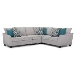 This modern transitional sectional is the perfect blend of style and comfort. Featuring a flared arm, deep seated comfort, reversible gel-blended seat cushions and reversible back pillows. Proudly built in the USA with durable, premium grade plywood. This sectional is covered in a trendy, casual/transitional fabric with great texture and a soft hand. A great fit for nearly any living space.