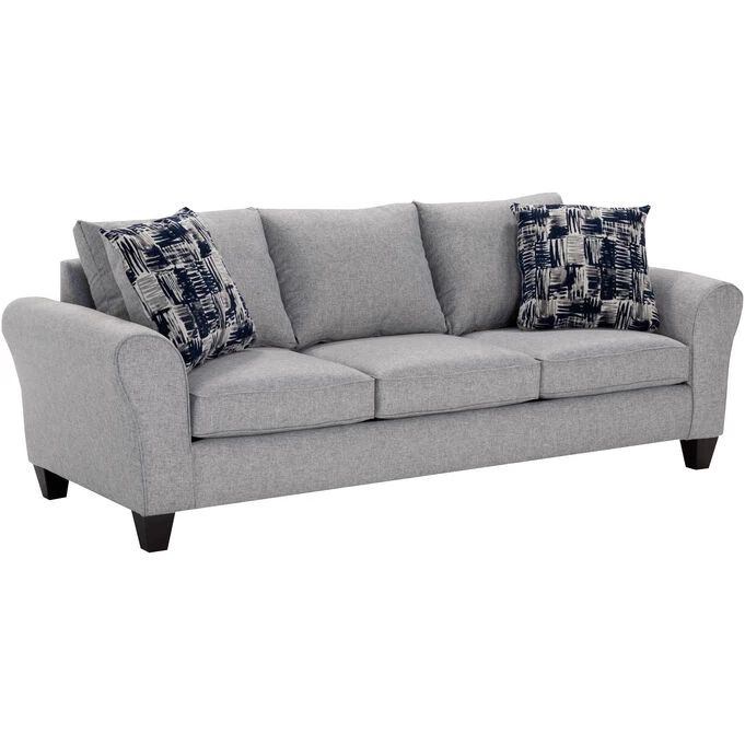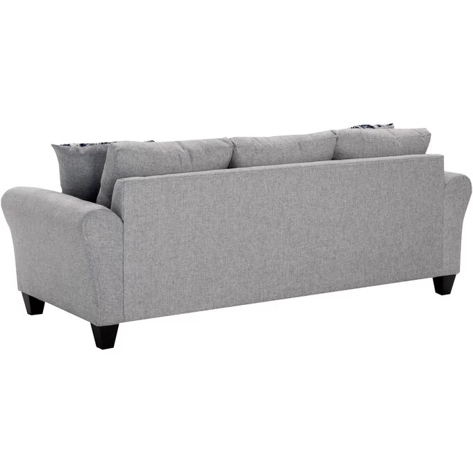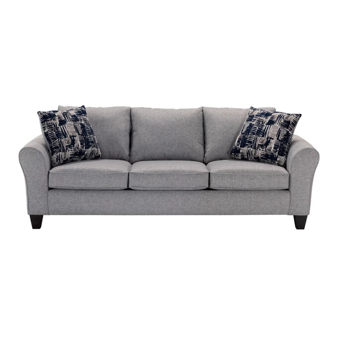 Transform your living space with the exquisite Geller Sofa. Its eye-catching design showcases a large flared-roll arm and a high-profile back, making it a focal point in any room. The Geller Sofa effortlessly combines modern aesthetics with exceptional comfort, offering plush seating, stylish flared arms, and coordinating wooden legs. Featuring tailored seams and box-welted cushions for a refined look, it also includes two matching accent pillows for added comfort and style. Whether you’re relaxing with family or entertaining guests, the Geller Sofa offers both style and coziness. Elevate your contemporary lifestyle with this graceful and trendy addition that redefines your living area.