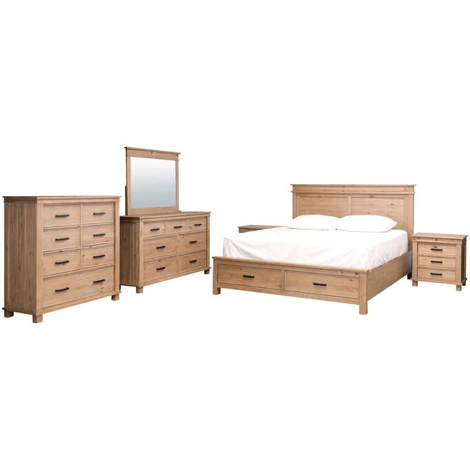 Putting a refined spin on rustic design, the Glacier Point bedroom set is crafted from solid reclaimed New Zealand pine. Each piece is carefully designed with function and style. The collection embraces a minimalist approach in the newest finish, Golden Java. The dresser features three small top drawers for delicate items and four deep drawers with plenty of space for t-shirts, jeans, sweaters and more. Functionality is highlighted with ample storage, allowing you to create a soothing and transitional space with a designer look. Glacier Point 4 Piece Captain Room Group includes a panel bed, spacious dresser, stunning mirror, and practical nightstand.