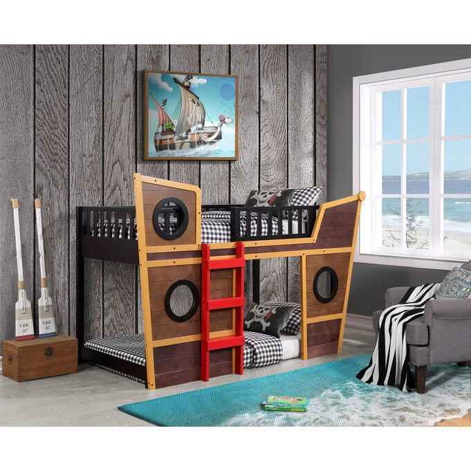 The cool Harding Pirate Loft Bed turns your child’s bedroom into a fantasy land. The twin-size pirate ship loft bed frame looks like a ship deck with portholes and has a ladder so your child can easily and safely climb in and out of bed. There’s plenty of space below for your child to play in their imagincay pirate fort, study, or watch TV. Or, you can fit an additional twin mattress, turning the bed into a bunk bed your child will love. The Harding Pirate Loft Bed will give your child hour of fun and entertainment and spark their imagination, making it an ideal bed for any child.