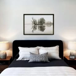 The Heartland Home Misty Pines Wall Art is a unique and elegant piece of decoration to add to your home. This art depicts a landscape of green pine trees draped in fog. This refined piece of art will signal to any guests in your home that your home is a chic one in which art is appreciated. Hang it in your living room or in a hallway to display. This painting adds a touch of culture to any home it is placed in, and it is suitable for just about any type of home décor, so get one now!