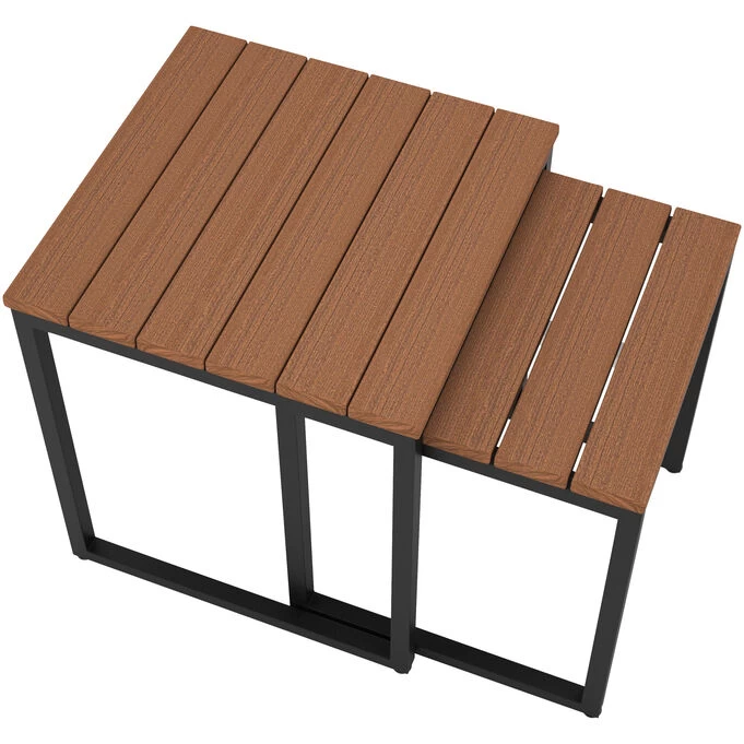 Unmatched versatility and modern style make the Hixon Set of 2 End Tables a charming and practical addition to any outdoor space. These nesting tables can be quickly stowed away to save space and conveniently placed anywhere they are needed. The tabletops are constructed with Tangent PolyTuf™ Lumber and supported by a powered-coated aluminum frame, giving them a streamlined and elegant look and feel. With squared angles and clean lines, the Hixon Set of 2 End Tables are durable enough to withstand harsh outdoor elements on your patio, porch, lanai or balcony and stylish enough to work with any design style.