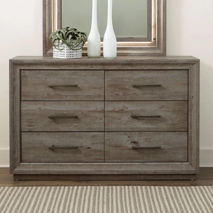 The Horizons Dresser by Liberty Furniture is a stunning masterpiece, crafted with the utmost care and precision to elevate your bedroom to unparalleled levels of elegance and functionality. This dresser offers a practical solution for keeping your clothing and accessories impeccably organized. Meticulously crafted from premium materials, this dresser ensures unparalleled durability and longevity, promising years of reliable use. Its sophisticated design showcases exquisite details, including decorative metal hardware and intricate woodwork, adding a touch of refined luxury to any bedroom decor. The Horizons Dresser is a perfect blend of style and practicality, making it an indispensable addition to your cherished bedroom furniture collection.