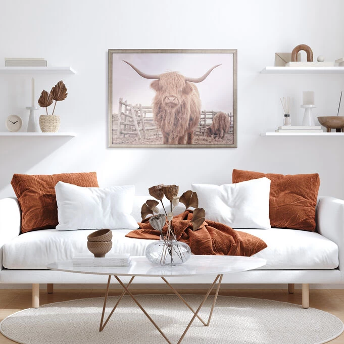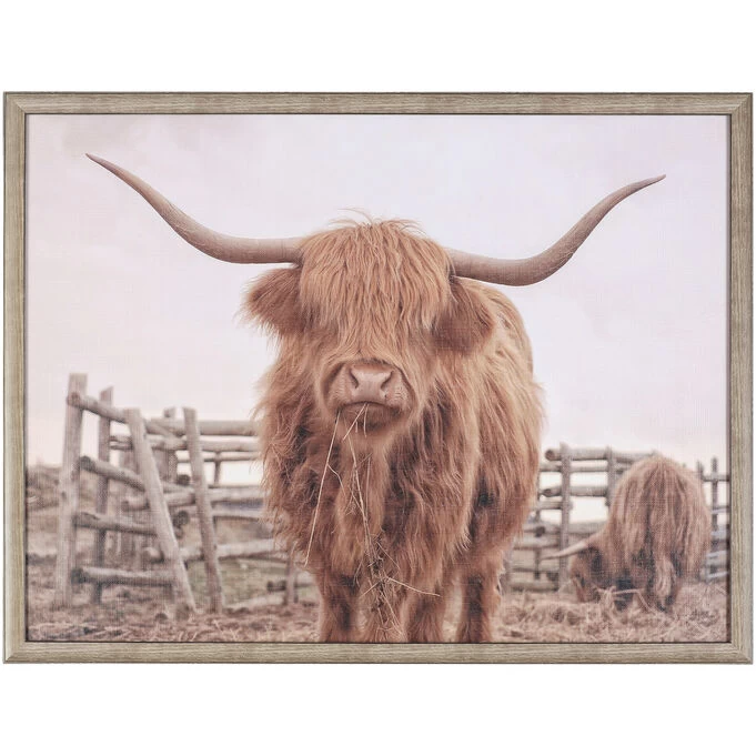 Known for their friendliness, who can resist the highland cow in this I Want Food Wall Art print? The stunning image of the shaggy cow grazing brings a rustic or farmhouse vibe to your home. The print highlights the impressive horns that contradict its gentle nature. The sepia tone brings a nostalgic feel to the artwork and goes well with a number of color palettes. It creates an eye-catching focal point behind the desk in your home office or the sofa in your living room. That serious face full of hair brings a touch of whimsy into whatever space you hang it.