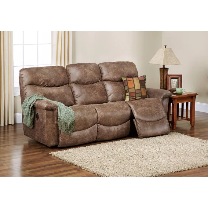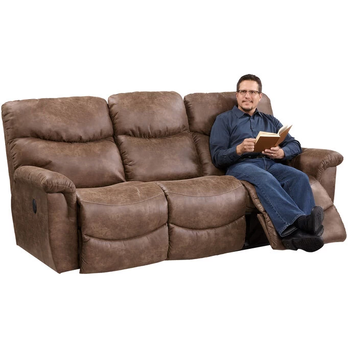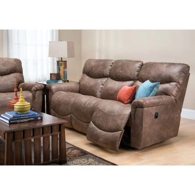 Sometimes, you can have it all, and the James Reclining Sofa is proof. Comfortable, cool and laid back, the James makes relaxing look as great as it feels. With inviting bucket-style seats and chaise leg rests cradle you in cozy support, stitched pillow back styling and pillow top arms pamper you in softness. The recliner is easy to use with a simple latch release system that has you relaxing in no time. High-grade foam cushions maintain comfort and appearance, while double-picked blown fiber fill offers improved cushion loft and shape retention. Decorative wood legs give the recliner an upscale look and feel.