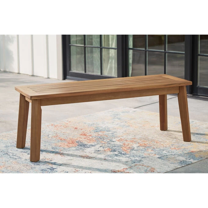 The perfect accompaniment to your outdoor wooden table, the Janiyah Outdoor Dining Bench is built to withstand the outdoor environment and remain stunningly beautiful. It offers stable, comfortable seating that makes enjoying your outdoor space a breeze. It offers beautiful design and solid quality, turning your outdoor entertaining space into the most popular place to gather. The simple lines and angled legs add to its casual, comfortable style. The elegantly simple design makes the Janiyah Outdoor Dining Bench the perfect addition to your deck, porch, patio, backyard or garden, creating the perfect outdoor space for relaxing with family or entertaining friends.