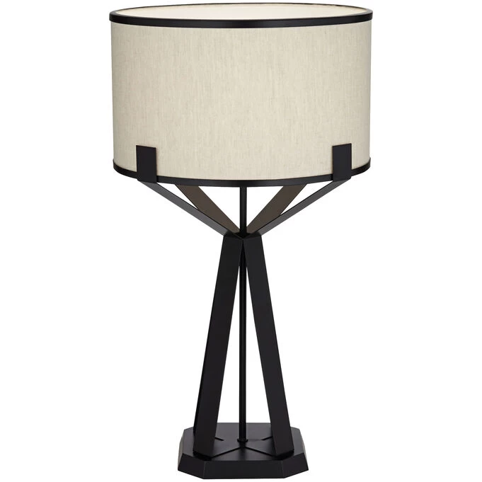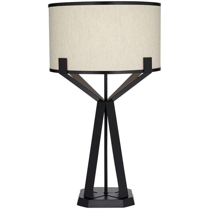 Illuminate your living space with the striking Jasper Table Lamp, a designer creation that draws inspiration from modern and rustic industrial-style lighting trends. The lamp’s base is a work of art, showcasing a cluster of support rods that gracefully ascend, culminating just below the shade, then expanding outward to cradle the top. This design creates dramatic angles that highlight the architectural brilliance of this contemporary table lamp. The open and airy composition is crowned with a light gray linen drum shade, casting a soft and inviting glow. The Jasper Table Lamp exudes a sense of structural elegance, making it a guaranteed focal point in any room, blending modern aesthetics with an industrial touch to infuse character and warmth into your decor.