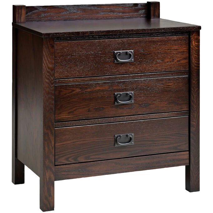 Want a curated look in your bedroom that reflects your style? The Jasper 3 Drawer Nightstand is a beautiful piece of furniture that can help you do just that. Its simple silhouette is ideal for an eclectic, transitional or vintage-inspired bedroom with a subtle touch of flair. The fashionable metal pulls add to its aesthetic appeal and serve a practical purpose, complementing the tasteful dark chocolate finish. Additionally, its dovetail drawer boxes and full extension drawer glides make it a sustainable and pragmatic choice for any room in your home. Bring the Jasper 3 Drawer Nightstand into your home today.