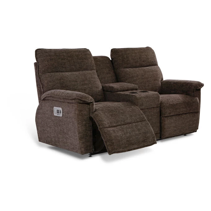 The Jay Full Reclining Loveseat with Console is a family favorite, thanks to its Power Headrest and Lumbar support. This transitional-style sofa has pillow-soft seats, a tall back, and detailed flange stitching, making it a perfect fit for any décor. However, what sets it apart is the sleek wireless remotes that come with it. With just the touch of a button, you can go from an upright position to a fully reclined. The powered backs and legrests move as one, allowing you to find your favorite reclining position. The power-tilt headrest and lumbar motors also move separately, supporting your head, neck, and lower back as you read, watch TV, or relax. Staying connected is easy with convenient built-in USB ports.