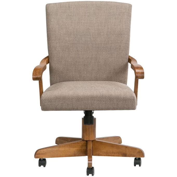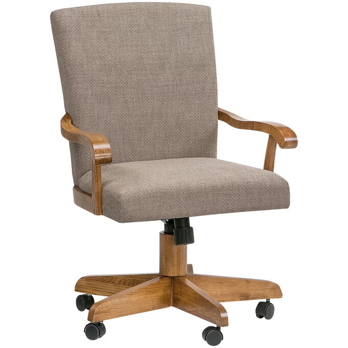 If you’re looking for classic furniture with an updated sensibility, the Jefferson oak arm game chair is a great choice. This solid oak chair has a padded fabric body, making it perfect for dining, working, or sitting down to a game of cards. Casters on the bottom make getting in and out absolutely effortless. You’ll love the comfort and versatility of the solid oak game chair.