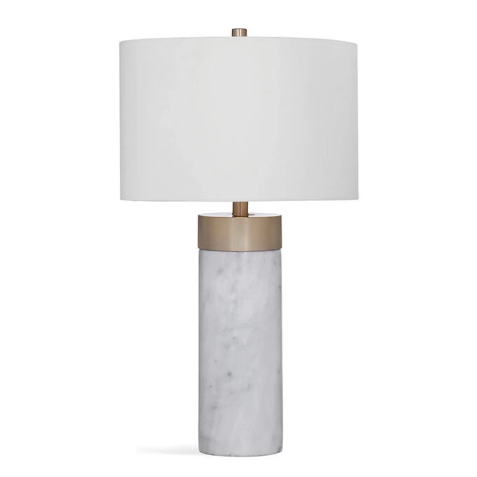 Add the beauty and elegance of marble to your home décor with the Jocelyn Table Lamp. The Jocelyn table lamp’s marble, cylindrical shape is topped with antiqued brass and a white linen shade, making it a modern-chic addition to any living area. Because marble is a natural material, each lamp features unique markings, making it truly one-of-a-kind. Durable and stylish, this lamp will last for decades and can be moved from room to room, depending on your lighting needs. Its neutral color and style goes with any décor, including transitional, traditional, farmhouse, eclectic, modern, and contemporary, so if you change your style, the Jocelyn Table Lamp will fit right in.