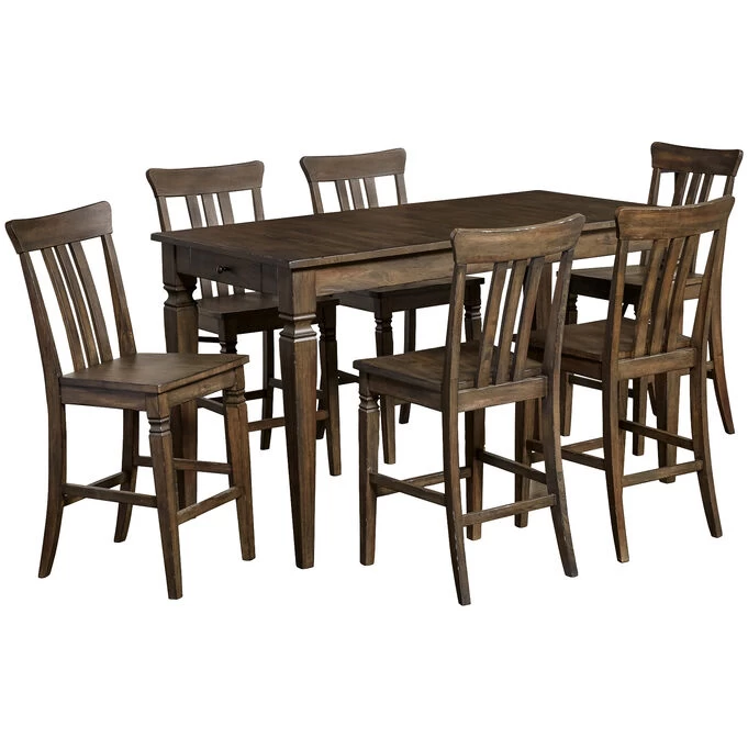 Gather with friends and family and make special, new memories at the masterfully-crafted 5-piece Kingston Dining Set. Constructed of deeply-distressed solid hardwood, this timeless set includes an extendable table and four matching stools. Leave the table as-is for intimate conversations, or use the self-storing leaf and wooden glides to entertain a larger group. The two functional drawers (one at each end of the table) offer plenty of storage space without compromising style.