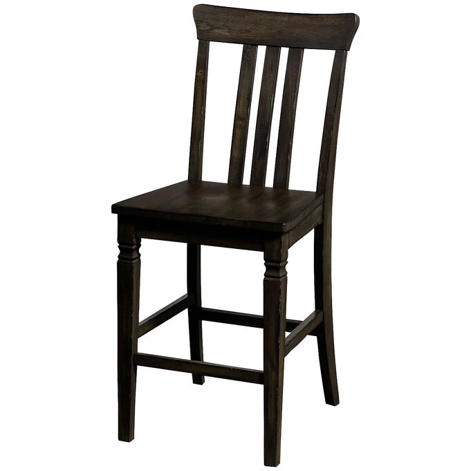 Have a seat at your kitchen island or your Kingston Counter Height Table in the masterfully-crafted Kingston Counter Stool. Constructed from deeply-distressed, solid hardwood, this seat beautifully reflects the timeless elegance of colonial style. Its slatback design and corner blocked seat provide character, charm, and back support, too.