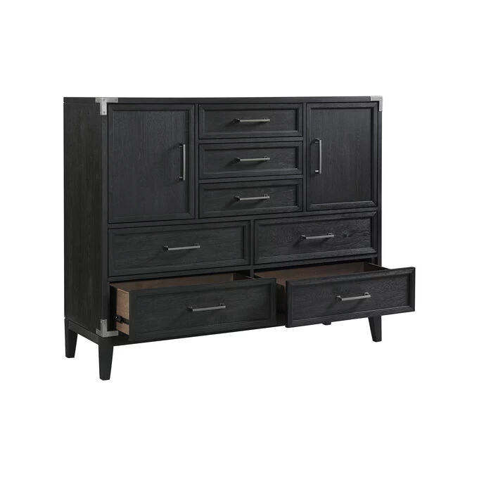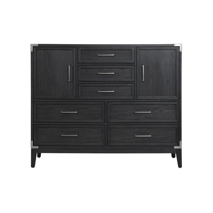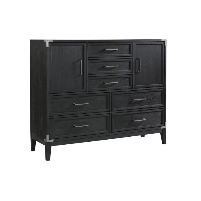 The Laguna Storage Bench is a versatile and stylish piece that is perfect for any room in your home. The wire-brushed multi-step glazed finish in Weathered Steel complements any decor and adds a touch of rustic charm. The bench is made of oak veneer and hardwood solids, providing durability and sturdiness. The antiqued metal hardware with pewter finish and decorative metal corner brackets enhance the overall look of the bench. The drawers feature Cedar lined panels, adding a refreshing scent and protecting your clothes and other belongings. Use the Laguna Storage Bench to store extra blankets, pillows, or other bedroom essentials while adding a chic accent to your space.