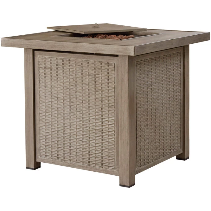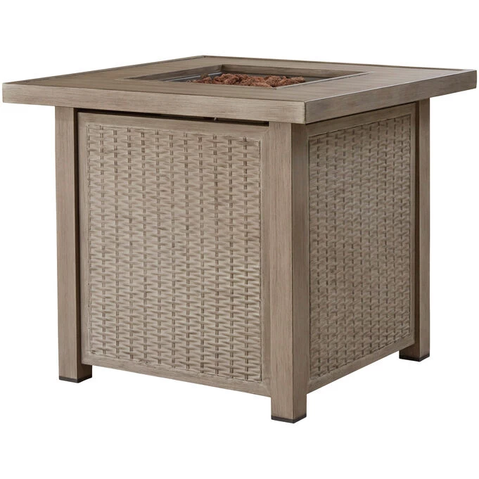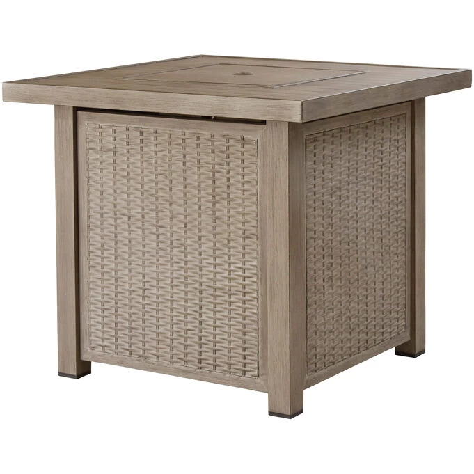 A crisp evening is better with the Lyle Firepit Table and a glass of wine. This gas fire pit table is the perfect spot for sparking conversation with friends or snuggling with your sweetie. It offers a sleek-looking and easy way to enjoy a fire in your backyard — even on a weeknight. Ignition and flame control features get the perfect fire going quickly. The stainless steel burner with lava rock houses the flames. It also comes with a burner cover and an all-weather protective cover. Other features include steel frame with plank-effect tabletop, rotary ignition system with adjustable flame control, and side panels accented with wicker-inspired details. You’ll love gathering around the fire pit table to enjoy the warmth with family and friends. Plus, you’ll get to enjoy your outdoor space for longer and get more use out of it.