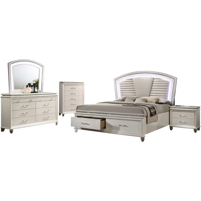 - White Padded Leatherette Headboard w/ Horizontal Tufting and LED Light