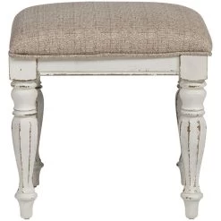 Bring a little European influence into your home with the Magnolia Manor Vanity Stool. A supportive and upholstered seat provides amazing comfort and the antique white finish is rustic and classy, all at once. You can’t help but appreciate the wonderful design, exceptional craftsmanship and the fact that it is yours.