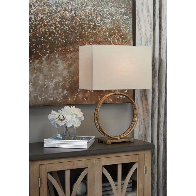 There’s something so elegant about this table lamp’s rounded shape. Gold tone braided metal punctuates the less-is-more base for that touch of high drama lighting you crave. – Product Details provided by Manufacturer, Slumberland not responsible for errors in information.