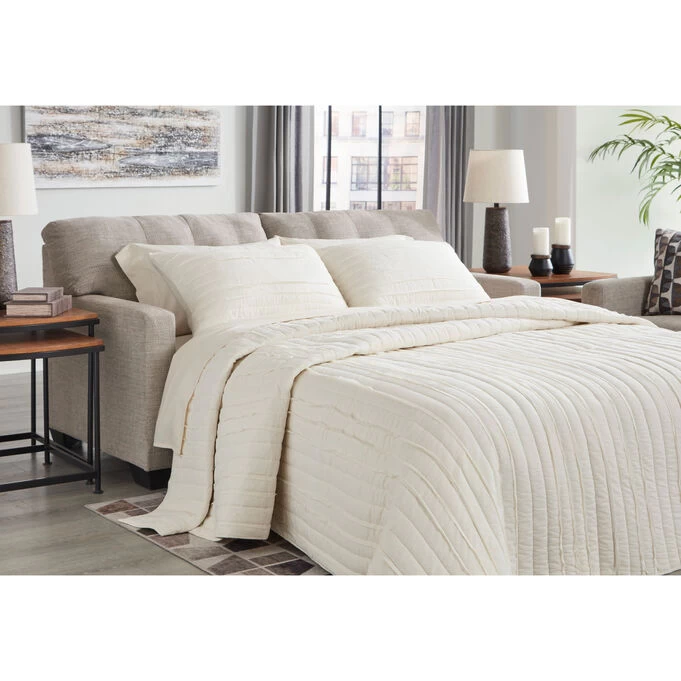 The Mahoney Sleeper Sofa offers reliable comfort with a touch of everyday style. This full sofa sleeper suits various spaces and features classic details like a tufted back and a modern structure. The multi-hued upholstery is pleasingly soft and contributes to the relaxed feel of this well-designed piece. Furthermore, it comes with an integrated mattress, adding an extra dose of functionality. The sleeper sofa’s neutral style works seamlessly with several design styles, including transitional, modern, minimalist and contemporary. Perfect for living rooms, home offices and multi-use spaces, the Mahoney Sleeper Sofa gives your guest a comfortable place to sleep while adding style to your home décor.